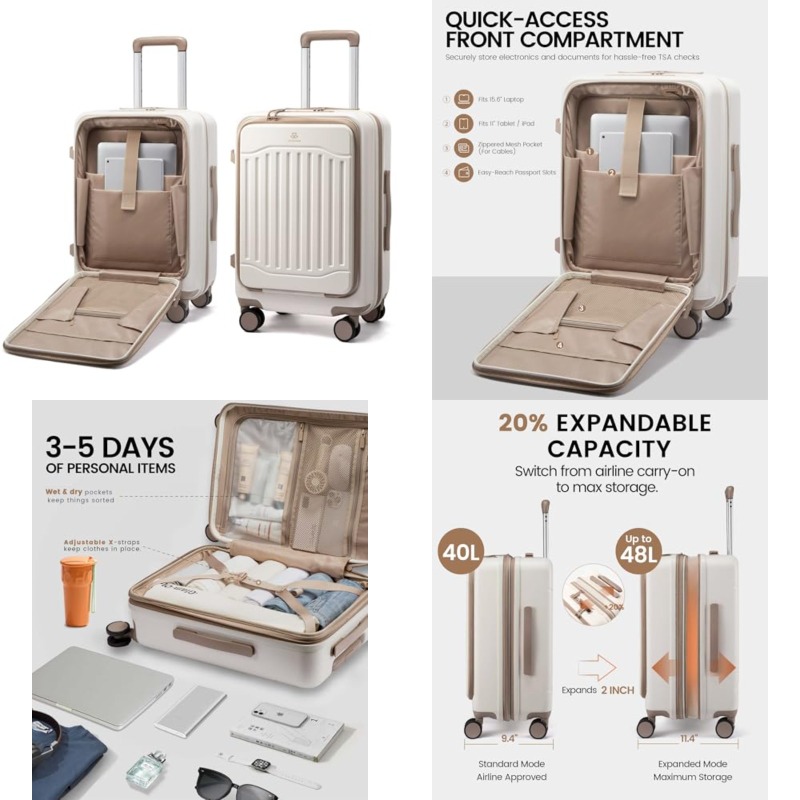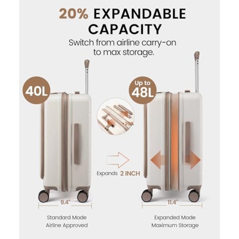 LOVEVOOK 22X14X9 Carry-On Suitcase, Airline Approved, Expandable Hard Shell with Spinner Wheels, USB Charging Port, Front Pocket, TSA Lock, Ideal for Travel